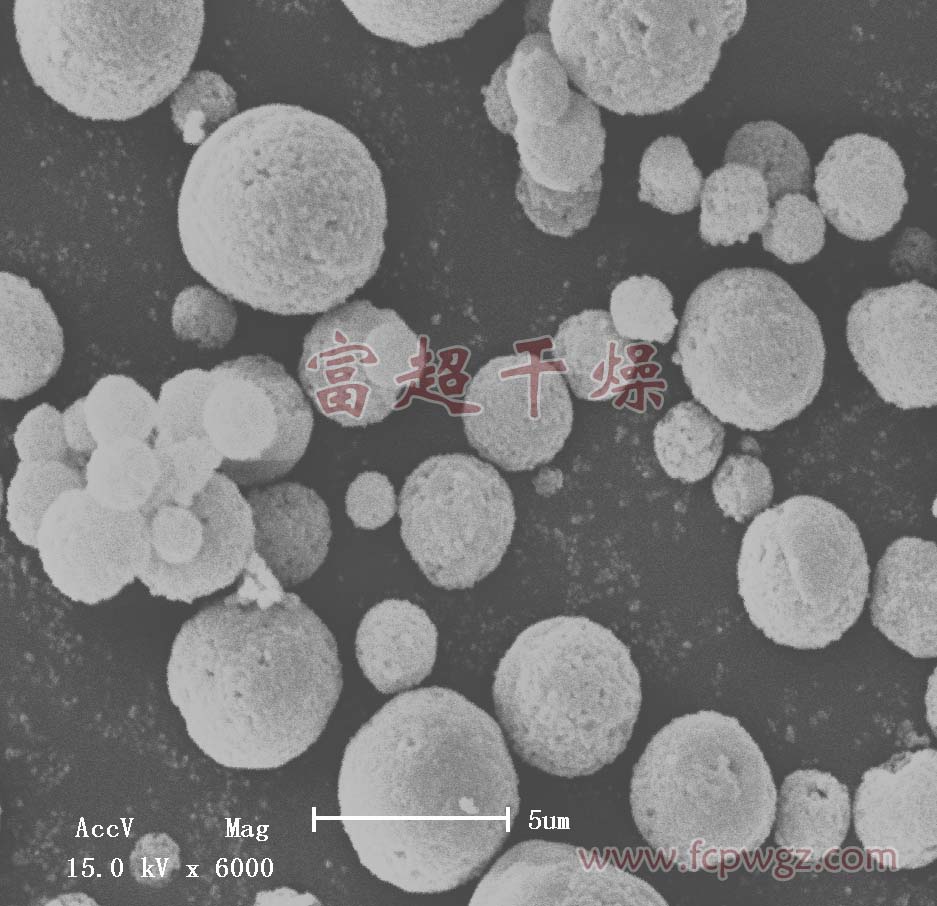 一般經(jīng)過噴霧干燥后的電池料還要經(jīng)過氮氣氛燒結(jié),有專家設(shè)想能不能燒結(jié)后的顆粒不再處理粉碎,整形而像在試驗室中一樣直接用,這樣可以少了很多工序,質(zhì)量容易控制。我們這次愛華股份磷酸鐵鋰噴霧干燥調(diào)試一次性成功,達到了試驗室的粒度要求。并且經(jīng)過SEM照相發(fā)現(xiàn),經(jīng)過十萬倍的放大,不管顆粒多小內(nèi)部組分是均勻的,噴霧干燥中沒有產(chǎn)生偏析,與在我公司的微型透明機上做出的料差別不大,他們又做了電芯倍率,充放電電曲線等試驗,性能要比用高速噴霧干燥機生產(chǎn)的要好。