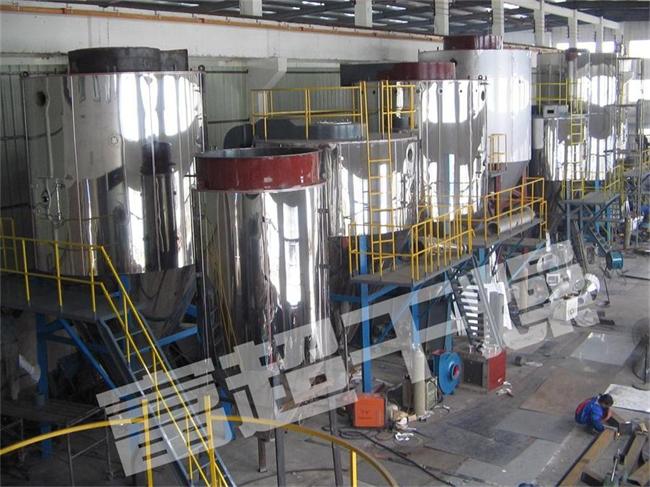 以往常規的陶瓷制粒粉料均采用壓力式噴霧干燥,由于該種機型設備高度較高、能耗大、徹底清洗困難,我廠工程技術人員自92年開始研制離心噴霧造粒干燥機,先后為華中理工大學(電容器陶瓷)、江蘇陶研中心(壓敏陶瓷)、北京礦冶研究總院(碳化鎢、氧化鋁)、上海硅酸鹽研究所(熱敏電阻、氧化鋁)、潮州三環集團公司(微波陶瓷)、南京化工大學(電容器陶瓷)提供了10~50kg粉料每小時的離心干燥機。因為這些機器總高度不超過5米,大大降低了用戶的廠房投資,先進的熱風系統完全消除了氧化皮的存在,從而使陶瓷粉料減少污染,各項性能均超壓力式噴霧干燥機生產的粉料。